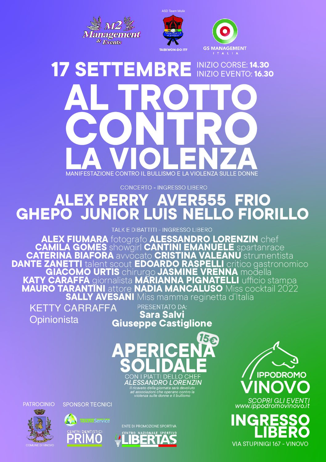 L’evento è reso possibile grazie alle agenzie M2 MANAGEMENT di Monica Mauro e GS MANAGEMENT ITALIA di Gabriele Schifanella, in collaborazione con l’ASD TEAM MULÈ e l’IPPODROMO DI VINOVO.