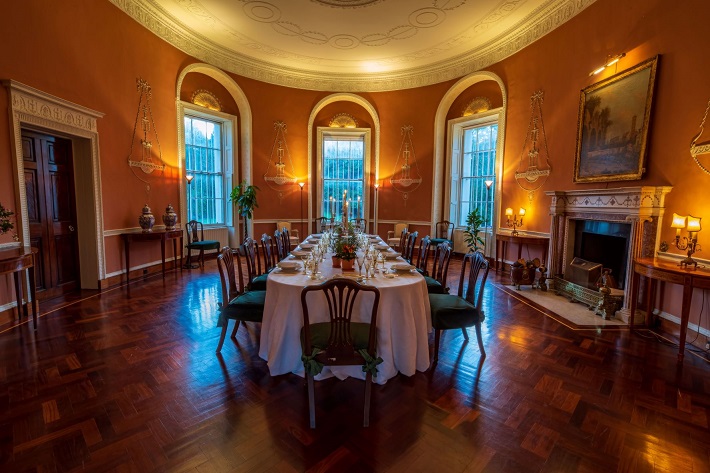 girasole, ricamato al centro di un pregiato tappeto del Donegal. La ‘Dining Room’ di
