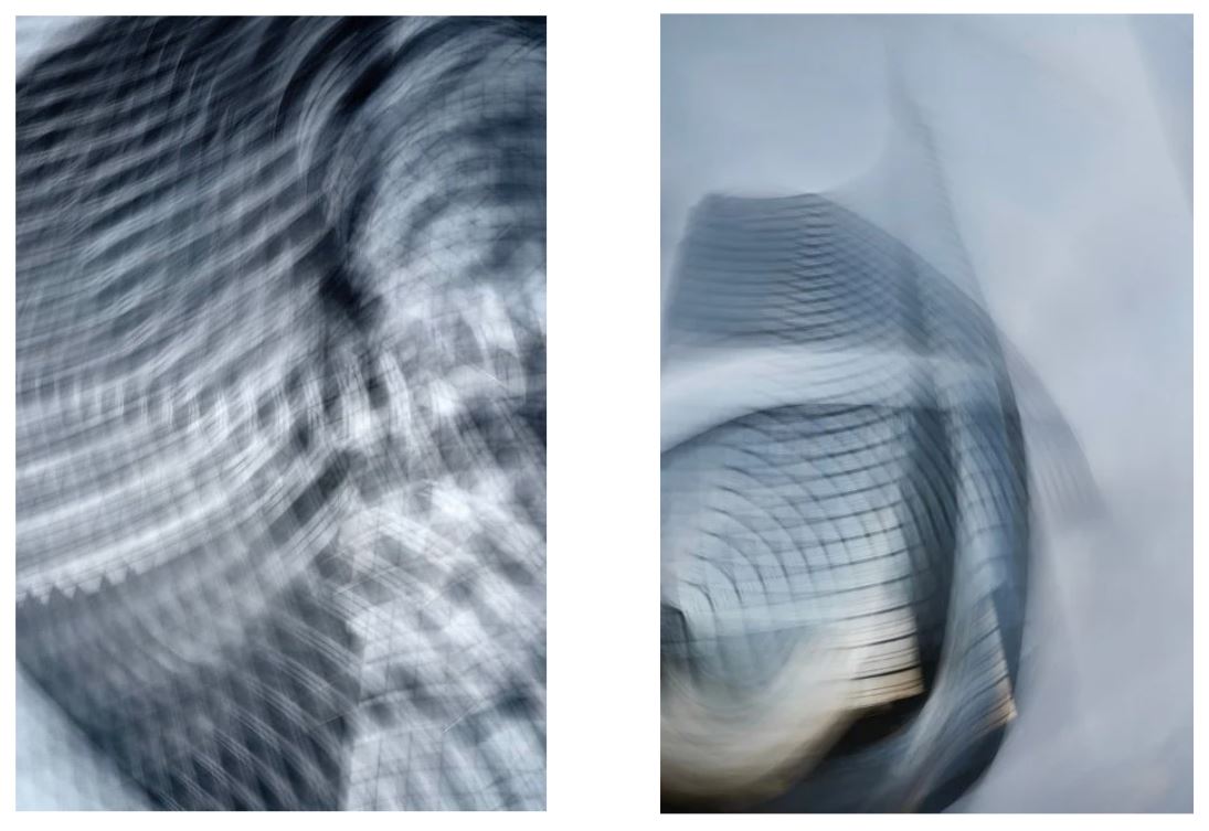 Attraverso la tecnica delle lunghe esposizioni, l’artista dissolve i confini tra le superfici di vetro, pietra e acciaio degli edifici, trasformandoli in scie luminose, forme in movimento e astrazioni visive che sembrano evocare la pittura futurista del primo Novecento. Le opere in mostra, realizzate a partire dal 2015, sono il frutto di un lavoro decennale che esplora il rapporto tra l’uomo e lo spazio urbano, tra concretezza e immaginazione.